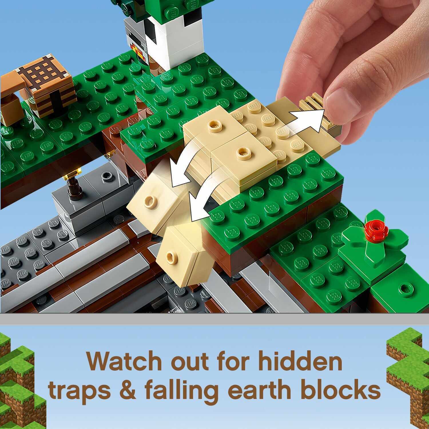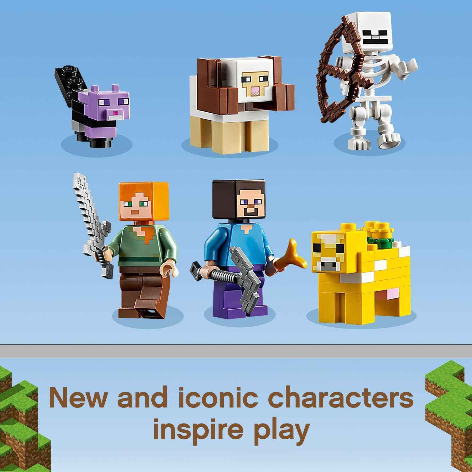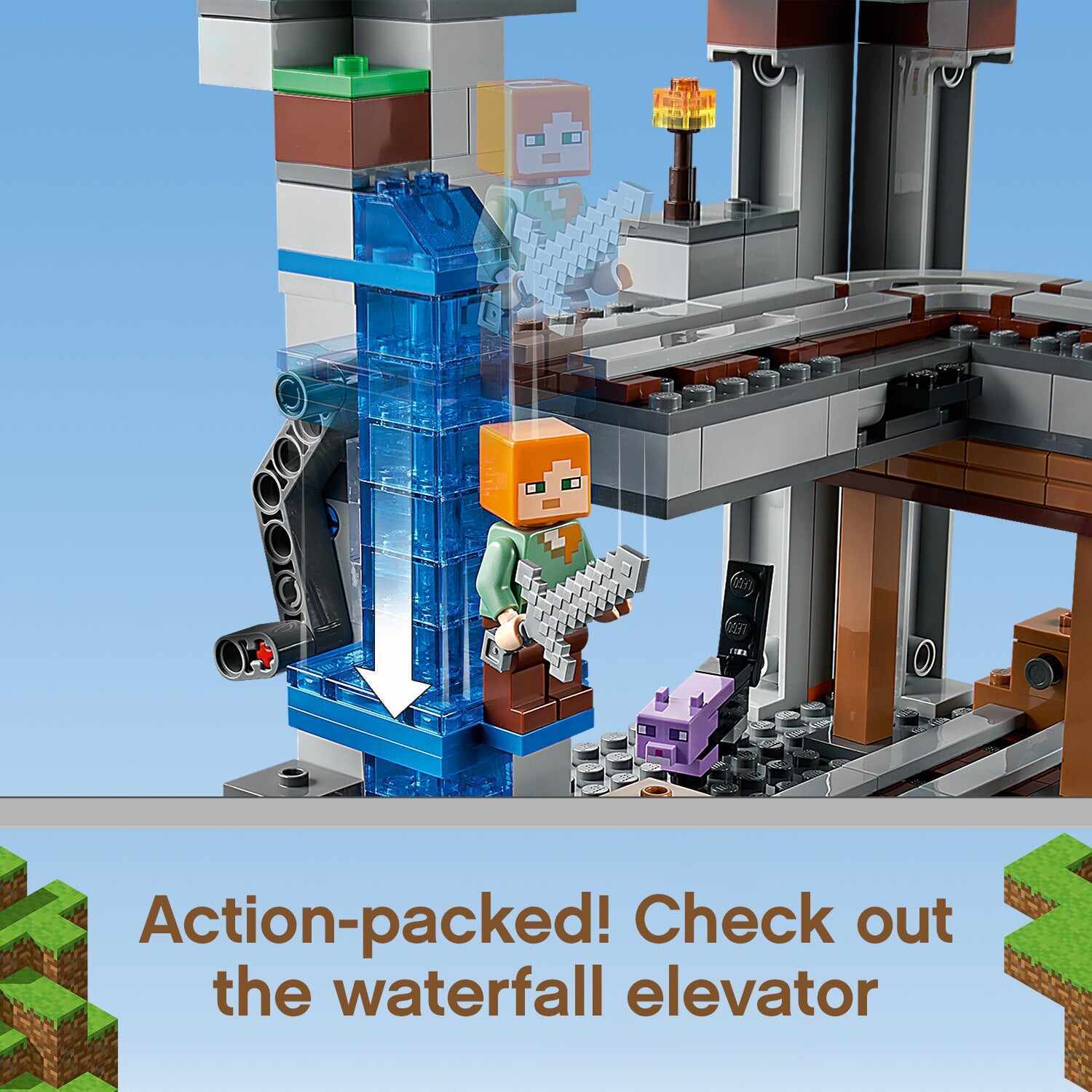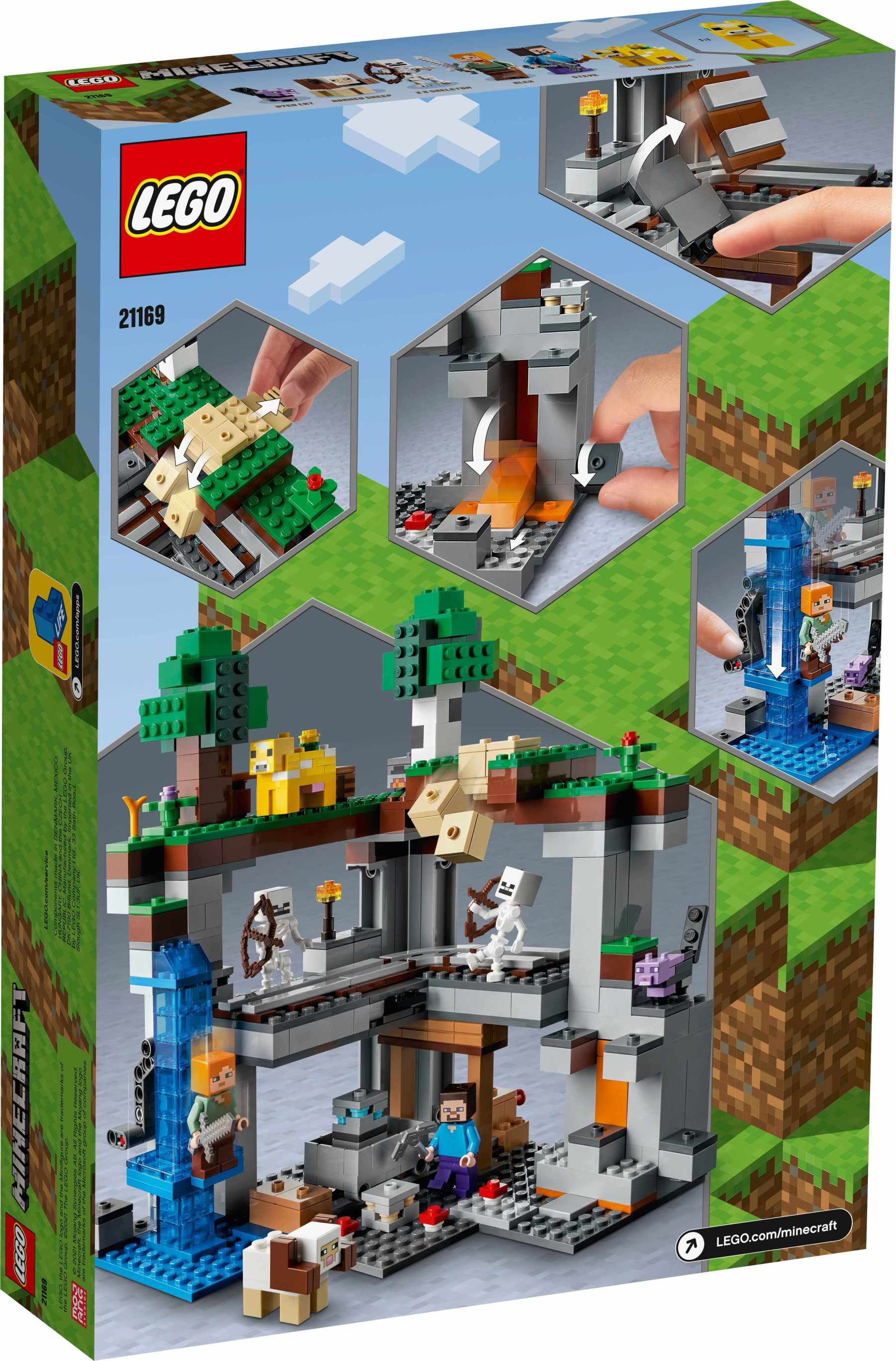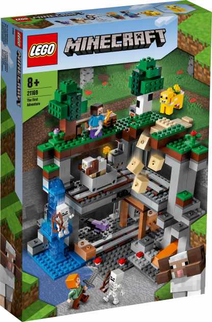LEGO® Minecraft™ The First Adventure (21169) takes players into the Minecraft world, where they can explore endless action and adventure with cool features, popular characters and amazing mobs.An impressive new way to play MinecraftIf you know a child with a passion for Minecraft, they’ll love this recreation of one of Minecraft’s most exciting environments. There’s a 3-level structure packed with fascinating features to explore, such as a waterfall elevator, collapsible rail tracks, sliding earth blocks and, of course, explosions. Popular Minecraft characters Steve and Alex are here to share the adventure, along with Minecraft favourites, skeletons, a dyed cat, horned sheep and a flowery moobloom.