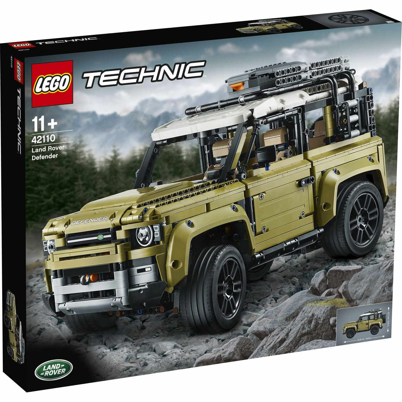 Experience world-leading vehicle design firsthand with this highly authentic and displayable 42110 LEGO© Technic™ Land Rover Defender model. Developed in partnership with Land Rover, this impressive LEGO replica captures the vehicle's outstanding level of refinement with its clean, modern lines and sculpted surfaces, and comes with original-design rims with ground-gripping tires, plus a host of realistic features and functions. Opening doors allow access to an elaborate cabin with a working steering wheel, detailed dashboard and a new-for-October-2019 transmission system with 2 levers for engaging high or low gear ratios and a selector for changing gear - the most sophisticated LEGO Technic gearbox to date! The interior also features forward-folding rear seats that give visual access to the 4-speed sequential gearbox. And, the attention to detail doesn't end there. This awesome replica model also has an in-line 6-cylinder engine with moving pistons beneath the bonnet, working All Wheel Drive with 3 differentials, independent suspension on both axles and a working winch! You can even open the tail door with a turn of the rear-mounted spare wheel. Finished with a removable roof rack with storage box, pannier, ladder and traction mats, this impressive interpretation of the quintessential all-terrain vehicle has been designed to provide a truly immersive and rewarding building experience. The perfect gift for Land Rover enthusiasts and fans of classic collectible model cars.