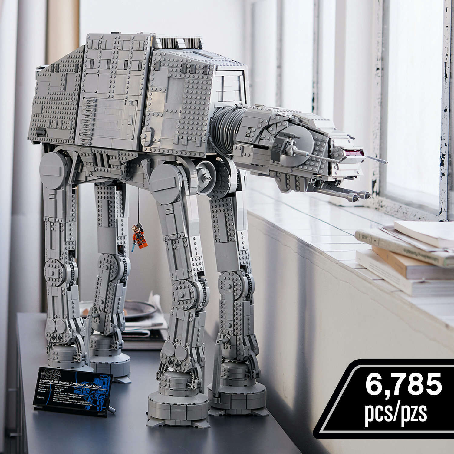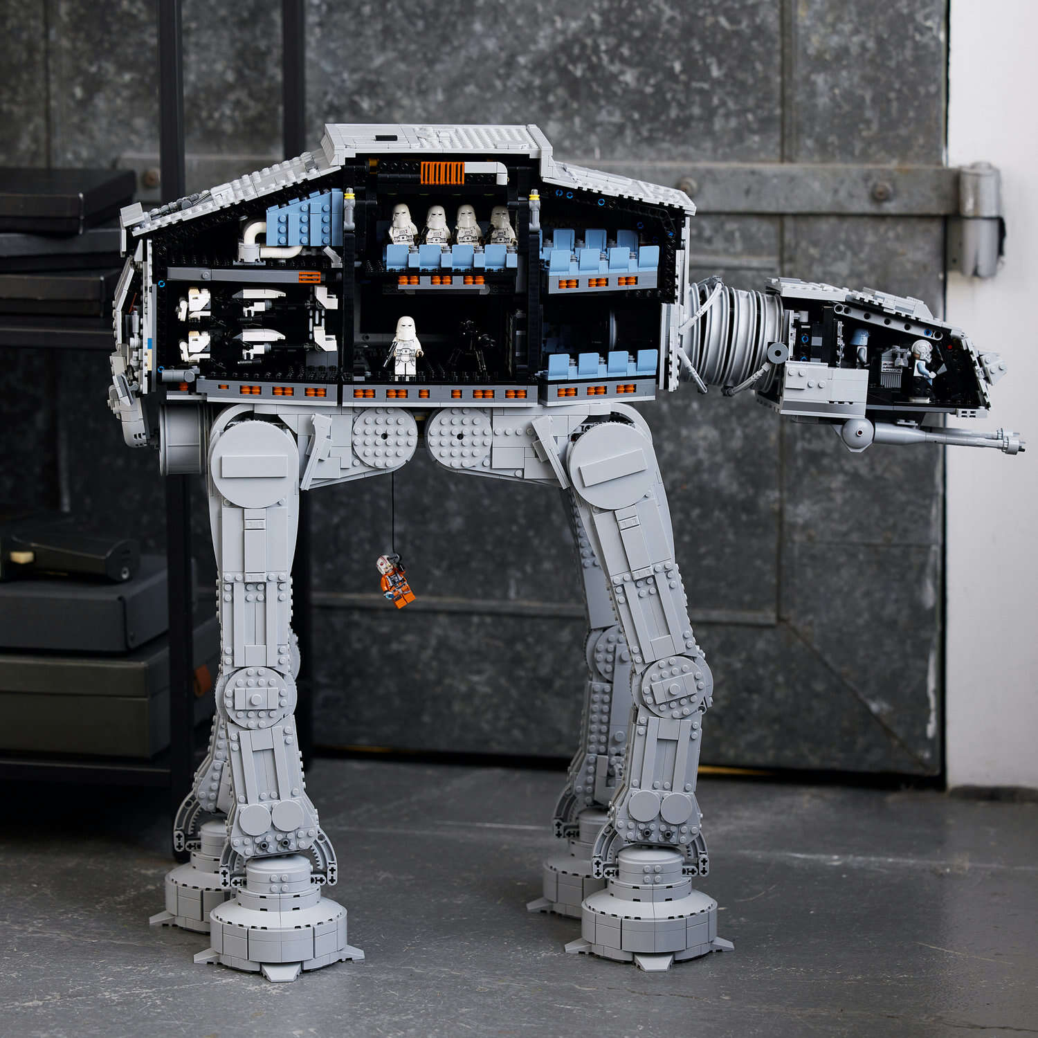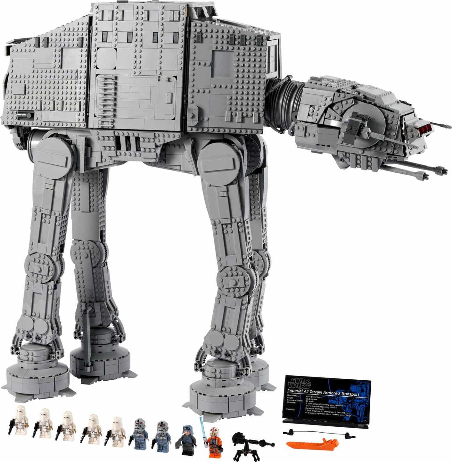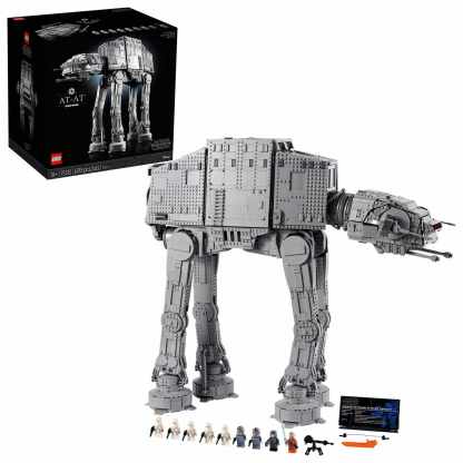 This is the AT-AT (75313) that every LEGO Star Wars fan has been waiting for. This epic Ultimate Collector Series (UCS) build-and-display model features posable legs and head, cannons with a realistic recoil action, rotating cannons, a bomb-drop hatch, and a hook to attach to Luke Skywalker's line, just like in the Battle of Hoth. Room for an Imperial army. The AT-AT measures 24.5 in. (62 cm) high and is easily opened to view the detailed interior. The main body has space for 40 LEGO Minifigures (General Veers and Luke Skywalker are among 9 in this set), 4 speeder bikes (2 included) and the included E-Web heavy repeating blaster. The head/cockpit seats 2 LEGO Minifigures and has space for 1 more. An information plaque completes a magnificent display piece. Super gift. It comes with clear instructions so you can enjoy every step of the immersive and challenging build.