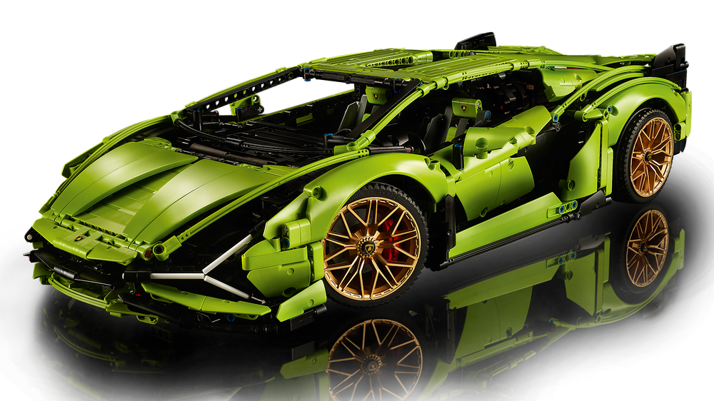 With an 8-speed sequential transmission, movable rear spoiler, opening front and rear hood, detailed disc brakes and golden rims, this LEGO® Technic™ set brings you closer than ever to the real Lamborghini Sián FKP 37.